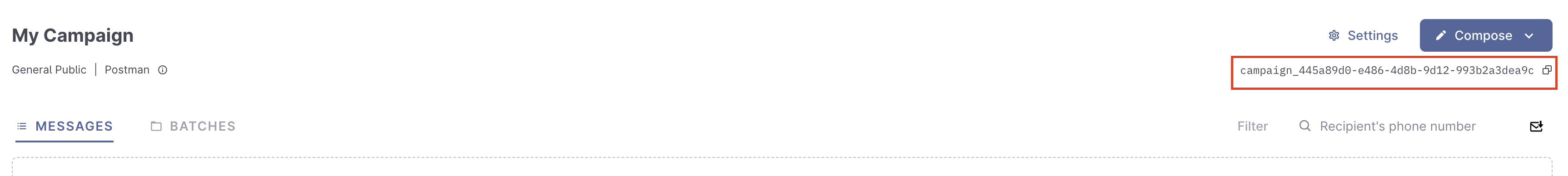 5. After creating the campaign, note down its campaign ID:<br>